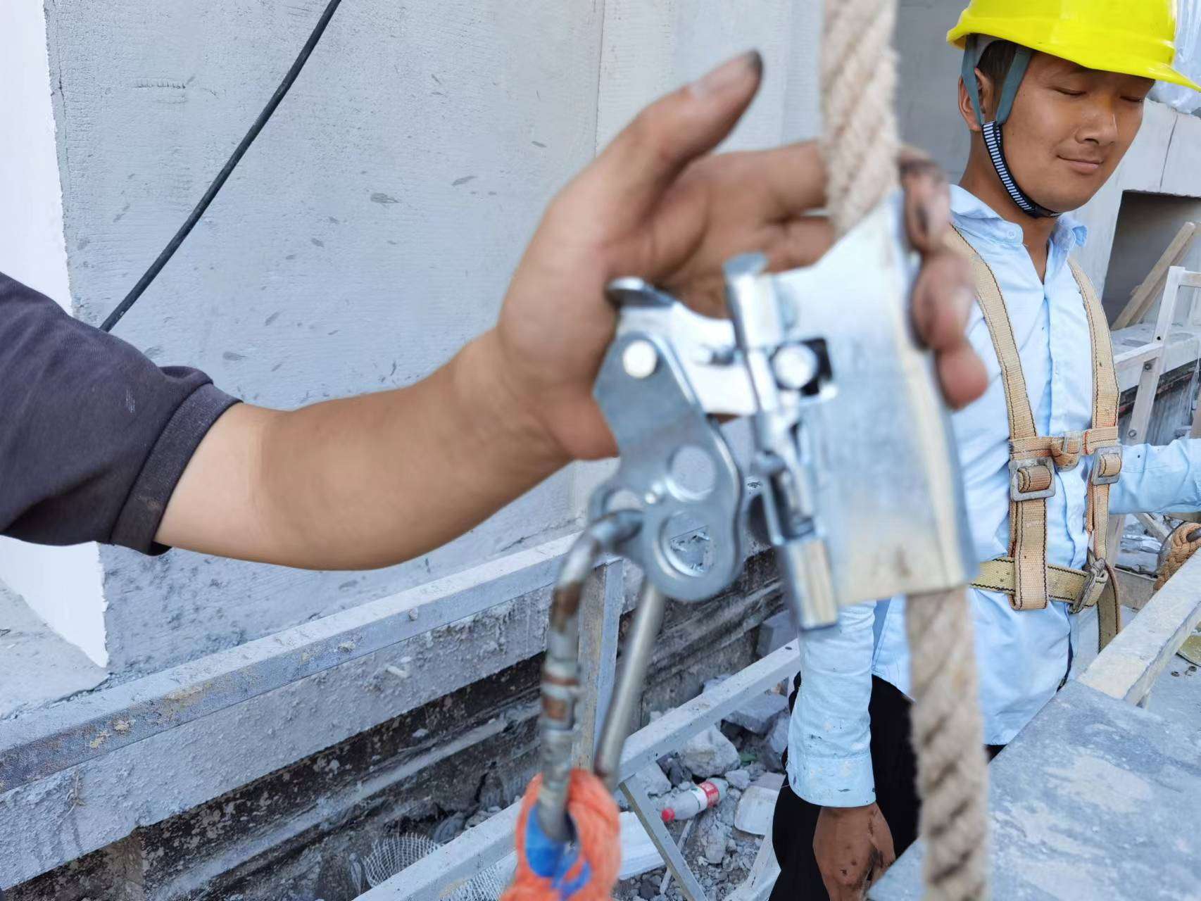 6月16日,湖北亞合建設(shè)于武大科技園青菱創(chuàng)新產(chǎn)業(yè)基地項(xiàng)目部組織開展了吊籃操作安全應(yīng)急演練。演練旨在提高現(xiàn)場(chǎng)施工人員的安全防范意識(shí),普及吊籃使用常識(shí),掌握自救知識(shí)和技能,預(yù)防事故的發(fā)生,青菱項(xiàng)目部項(xiàng)目經(jīng)理、甲方監(jiān)理、項(xiàng)目施工員及安全員參加觀摩。隨著安環(huán)部一聲令下,吊籃操作安全應(yīng)急演練正式拉開帷幕。外墻涂料班組、幕墻施工班組的現(xiàn)場(chǎng)施工人員在模擬施工時(shí),發(fā)生停電手動(dòng)下降,發(fā)生傾斜調(diào)整平衡,大風(fēng)強(qiáng)對(duì)流天氣應(yīng)急處置果斷處置,動(dòng)作流程規(guī)范、措施得當(dāng)。