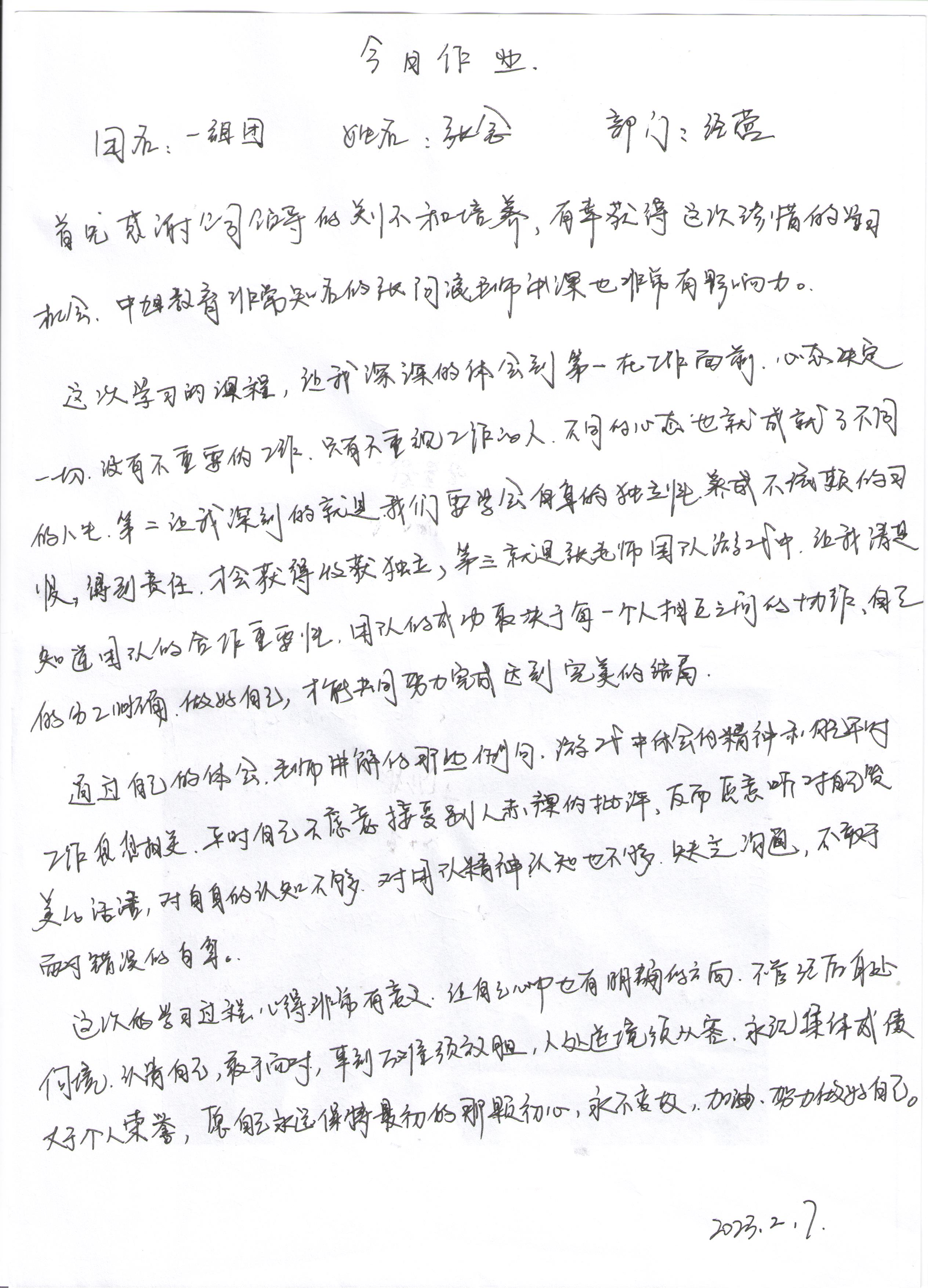 通過此次的培訓活動,員工思想得到啟發(fā),重新認識和審視了自我,同時也感受到了溝通、合作和執(zhí)行力的重要性。每一位員工在實踐中學習,在體驗中改變,受益匪淺,深深體會到了“沒有優(yōu)秀的個人、只有優(yōu)秀的團隊”的精髓。