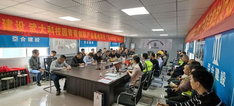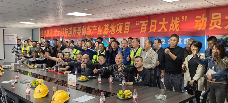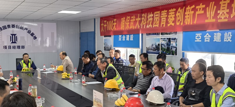 2021年10月12日上午11時(shí),湖北亞合建設(shè)在武大產(chǎn)業(yè)園青菱創(chuàng)新產(chǎn)業(yè)基地項(xiàng)目部會(huì)議室組織召開“百日大戰(zhàn)”動(dòng)員大會(huì)。該會(huì)議由亞合建設(shè)行政部召開主持,并邀請甲方楚朗公司領(lǐng)導(dǎo)、亞合建設(shè)董事長、總經(jīng)理、工程副總、商務(wù)副總、安環(huán)經(jīng)理、采購經(jīng)理、和平項(xiàng)目經(jīng)理、塔子湖項(xiàng)目經(jīng)理、大橋項(xiàng)目經(jīng)理、青菱項(xiàng)目一工區(qū)、二工區(qū)項(xiàng)目經(jīng)理、項(xiàng)目管理人員、勞務(wù)班組、施工員等五十余人參加,會(huì)議明確了100天的項(xiàng)目進(jìn)度計(jì)劃、施工方案及獎(jiǎng)懲措施,以保證武大科技園青菱創(chuàng)新產(chǎn)業(yè)基地(一期)主體結(jié)構(gòu)百日封頂目標(biāo)如期實(shí)現(xiàn)。